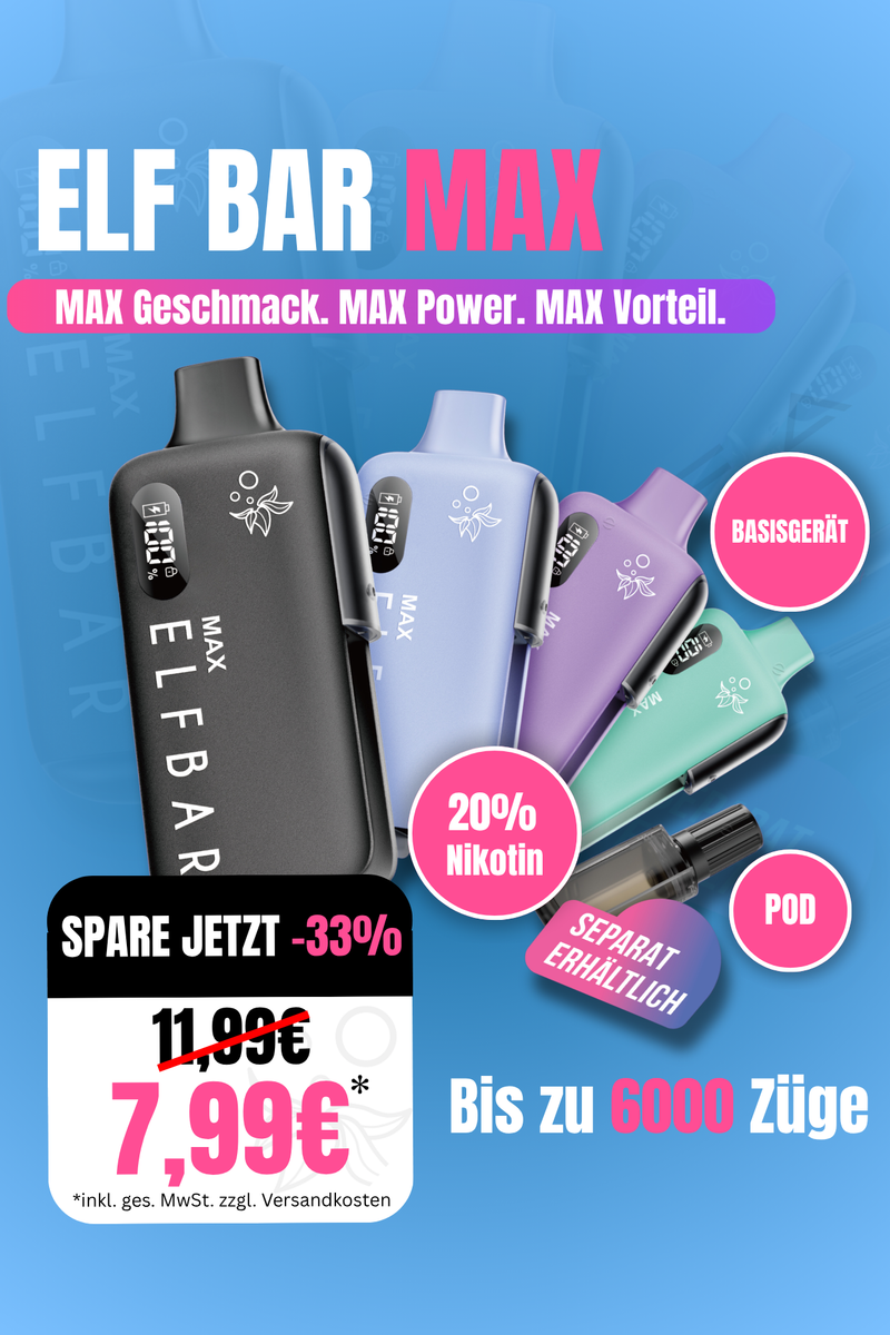Bei uns findest du alles, was das Dampferherz begehrt: Elfbar Einweg E-Zigaretten, ELFA Geräte, ELFA Pods und moderne Vapes für jeden Geschmack. Als spezialisierter Anbieter bieten wir dir eine riesige Auswahl an original Elf Bar Produkten – 100 % geprüft und direkt aus Deutschland versendet. Ob fruchtig, süß, eisig oder klassisch: Entdecke dein neues Lieblingsgerät mit nur wenigen Klicks.